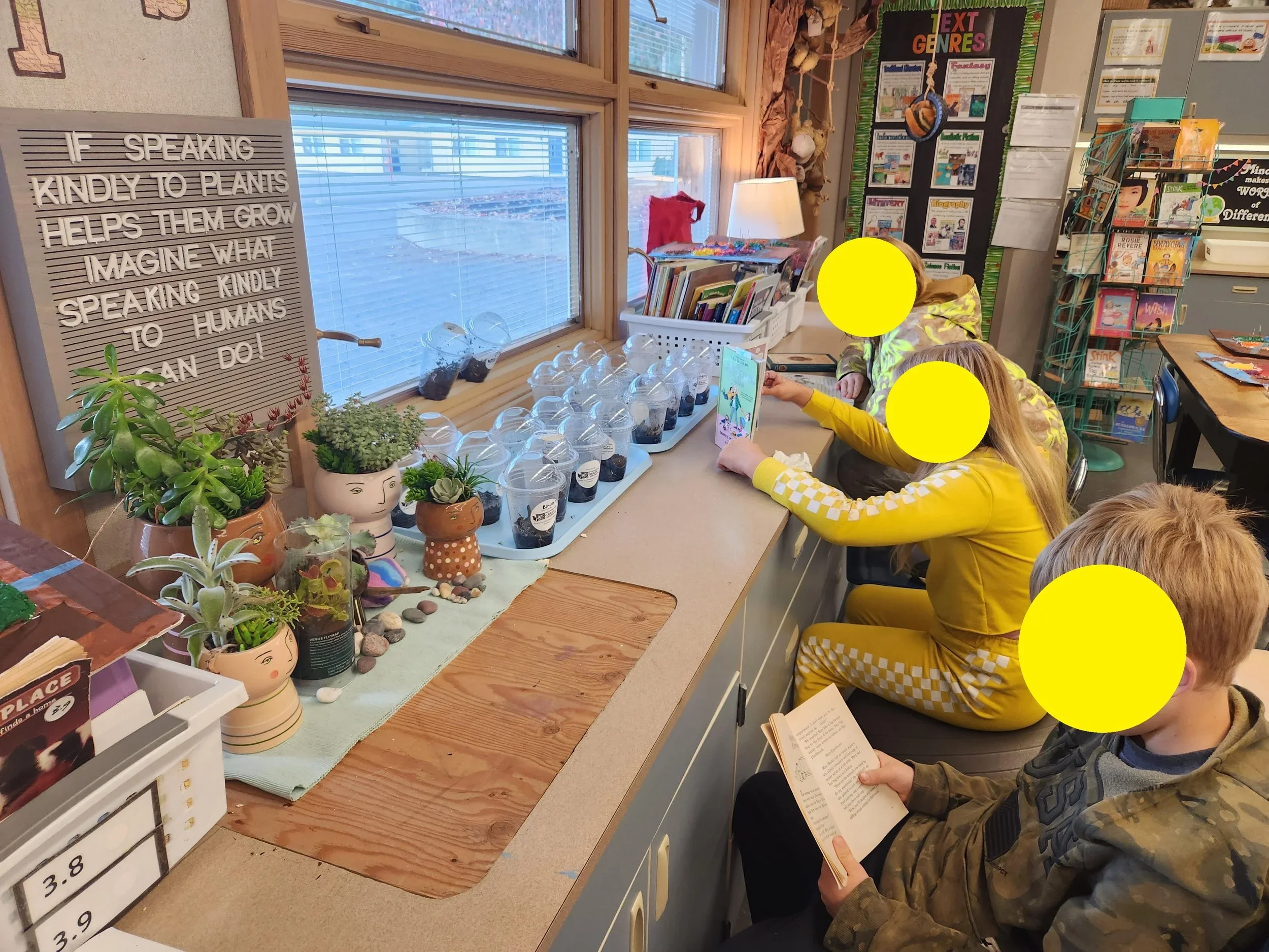 Students learn the names and functions of different plant parts, as well as what plants need to survive. To demonstrate their knowledge, students finish the lesson by creating their very own terrarium planted with wheat kernels. For the rest of the week, students will begin their lesson by observing their wheat plants and taking note of their growth.