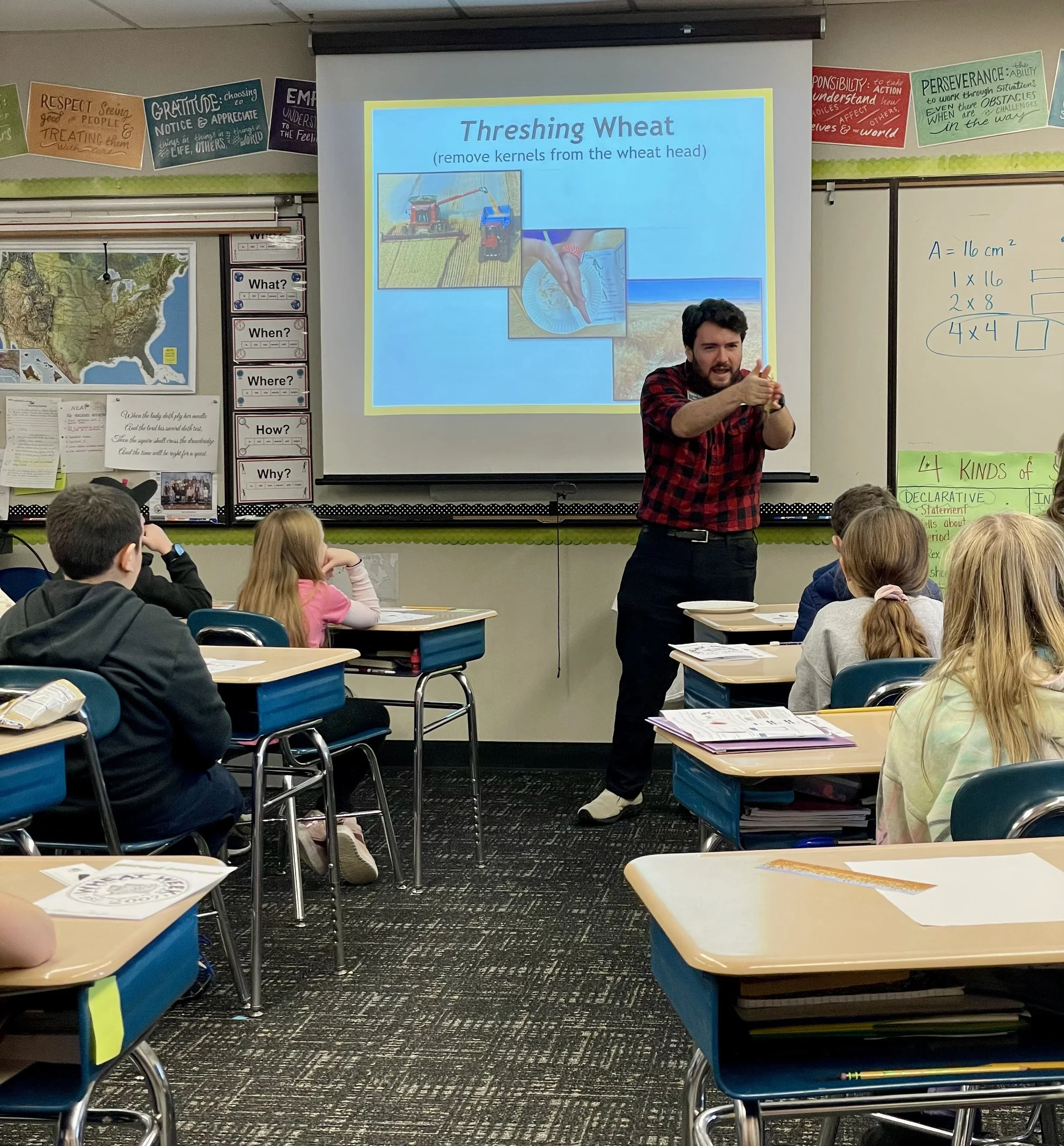 /Program Manager Nathan Sharon teaches a classroom using the wheat week curriculum.